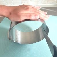 Első lépésben állítsd be a megfelelő méretet a tortakereten úgy, hogy a belső duplán körbefutó rész legszélső részére igazítod a szorítópántot.